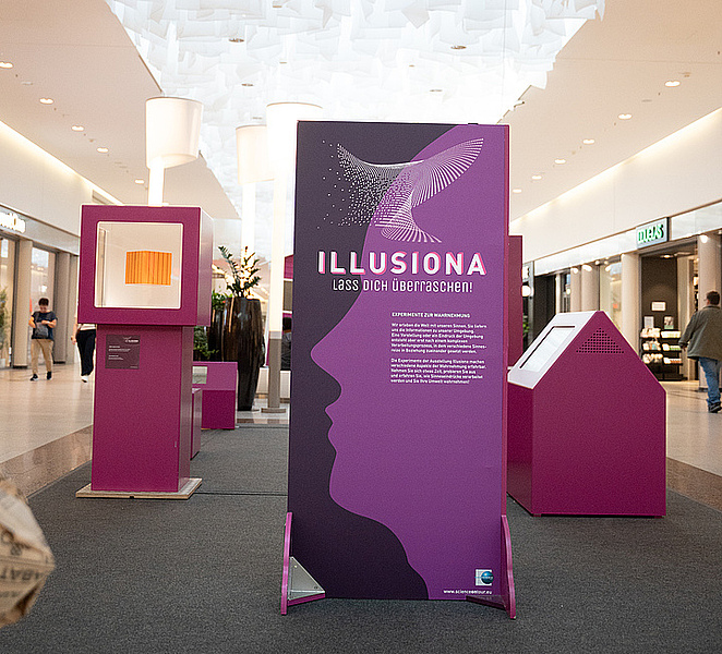 Wenn wir die Welt erleben, sind es unsere Sinne, die uns Informationen liefern. Aber erst nach einem komplexen Verarbeitungsprozess entsteht ein Bild oder ein Eindruck der Umgebung – dabei werden verschiedene Sinnesreizungen zueinander in Beziehung gesetzt und gewertet. Die Experimente der Ausstellung ILLUSIONA machen genau diesen Aspekt der Wahrnehmung erfahrbar, da einfache Phänomene in einen nicht stimmigen Kontext gebracht werden.