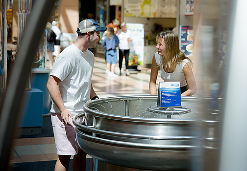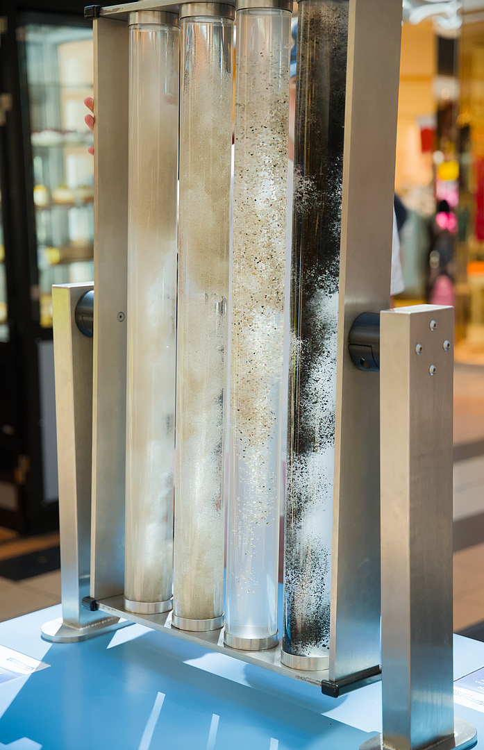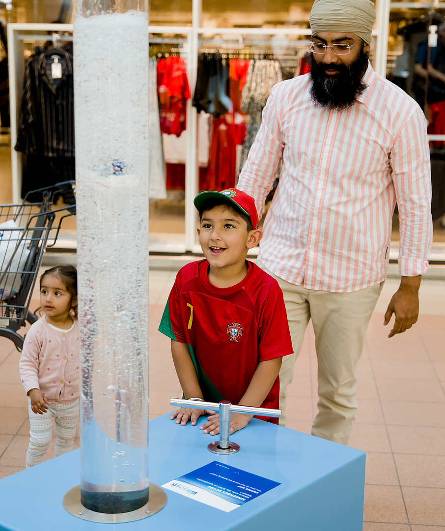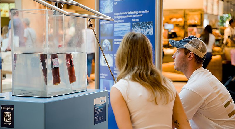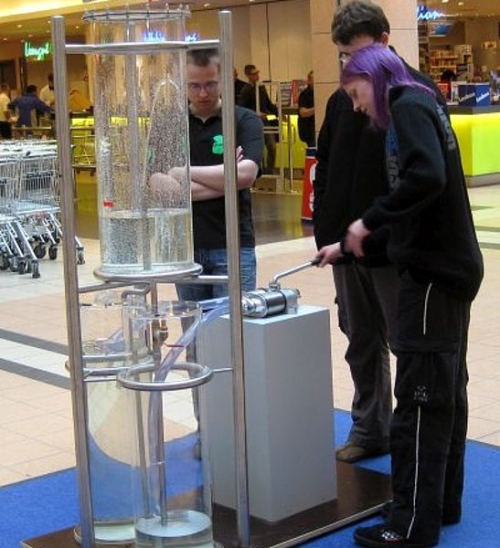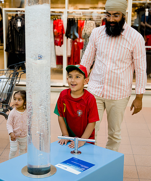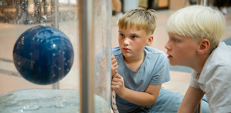 Es strömt, es bildet Muster es beeinflusst das Licht, es zeigt uns Kräfte an usw. Die Ausstellung lädt Menschen jeden Alters ein, Phänomene rund um das Thema Wasser selbst zu erkunden und Zusammenhänge zu erkennen.